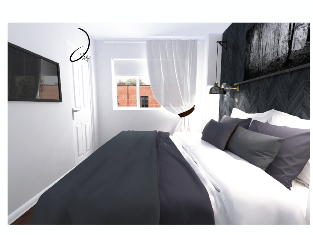 Guests access to the room from an outside door to an internal stair case leads you to the second floor. A common shared full kitchen space is available for use. Municipality parking is available in schedule condition time as well as private parking based on availability.